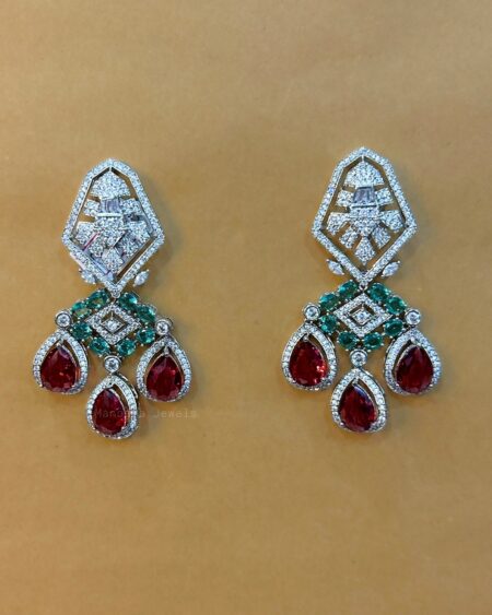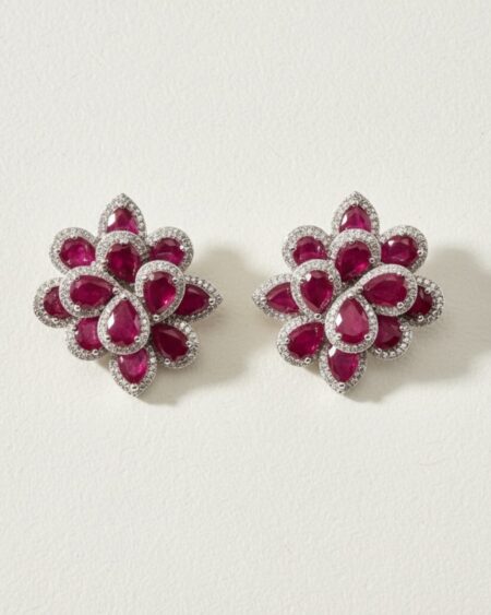 Geisha Luxurious Cluster AD Stud Earrings – Magenta