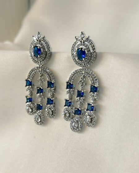 Styling Tip: Pair these earrings with a midnight-blue gown, silver saree, or sleek black cocktail dress for an effortlessly regal look. Keep the neckline bare or minimal, and complement with a soft updo or glossy waves to let the sapphire tones take center stage.