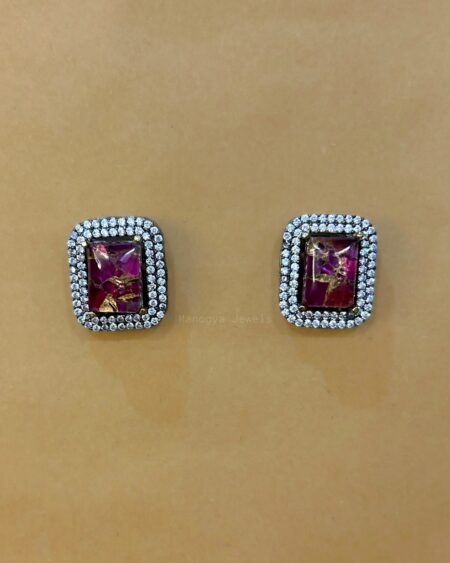 ₹2,620.00Original price was: ₹2,620.00.₹856.00Current price is: ₹856.00.Bold, feminine, and luxurious—our Nafisa studs featuring deep pink stones are made for those who love color and confidence. The striking rectangular marble stone center with gold accents is surrounded by radiant CZ diamonds, giving the perfect festive and statement-ready finish. A wardrobe must-have for celebrations, brunches, and date nights.
