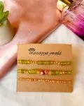 Love your greens? You’ll love our vibrant Green Meadows stack of 3 bracelets too! The stack features a gorgeous and voguish combination of light green and gold bead bracelets with textured bead accents.