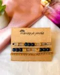 Our Amazonia Bae stack is inspired by the beauty of verdant Amazon forests. This stack boasts rich green and black beads, accented with gleaming golden beads reminiscent of sunlight filtering through the canopy of trees. Adorn your wrist with this verdant ensemble to capture the essence of the jungle’s vibrant allure wherever you go.