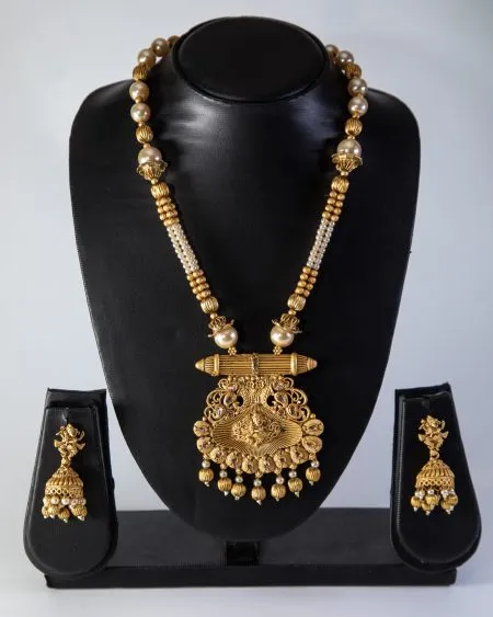 Complementing the necklace are the intricately carved Laxmi earrings, adding a touch of divine elegance and celestial grace that’s sure to capture the admiration of all those around you. Step into a world of timeless elegance and regal opulence with our exquisite Goddess Laxmi Necklace and let it be a reflection of your own unique style and grace, allowing you to make a bold fashion statement while exuding an air of sophistication and glamour that’s sure to capture the hearts of all those who appreciate true beauty.