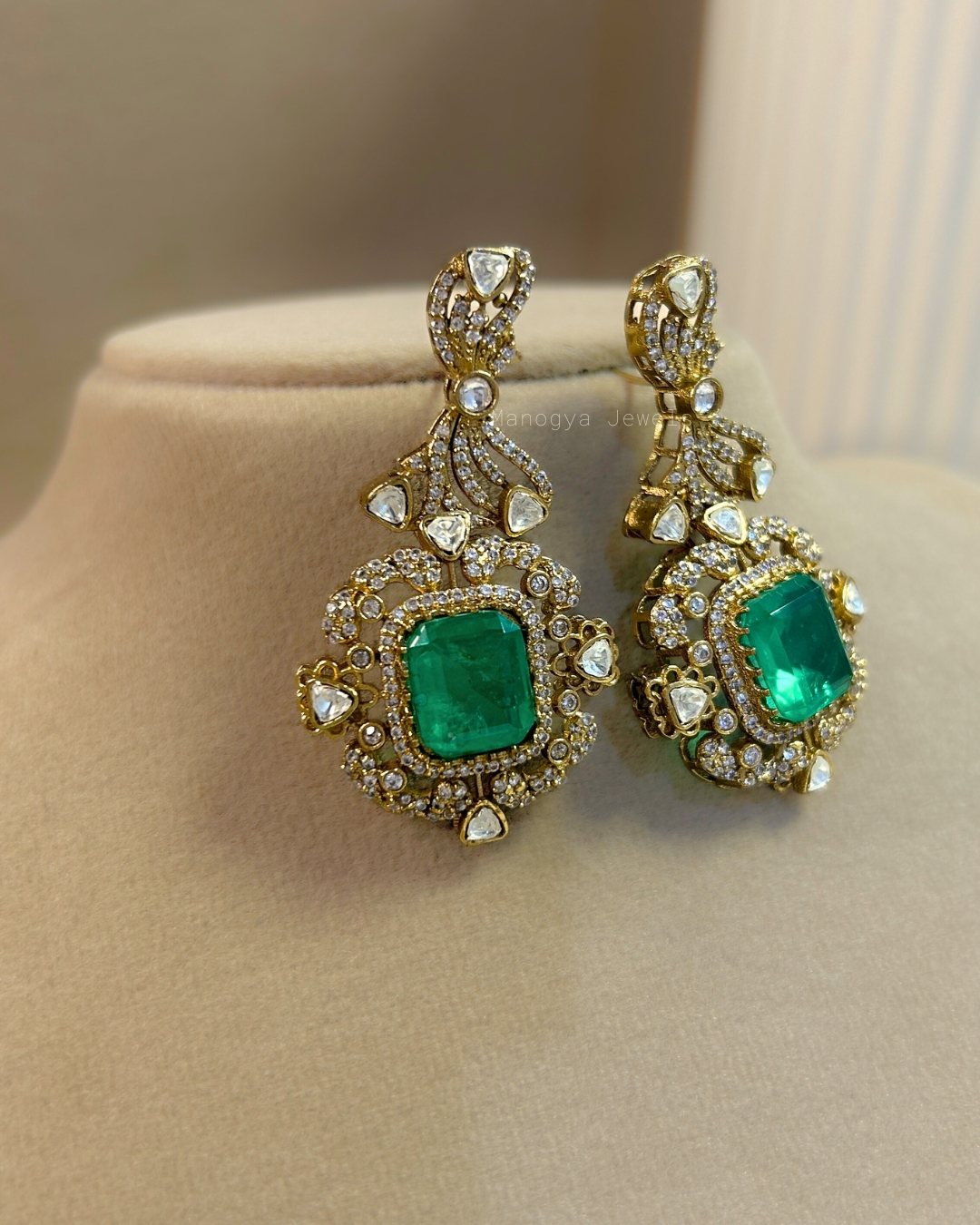 Style Tip: Pair this set with a red or pink lehenga or a champagne gold saree to complement its green accents. Opt for a sleek bun or soft curls to highlight the earrings, and keep the neckline clean for maximum impact.