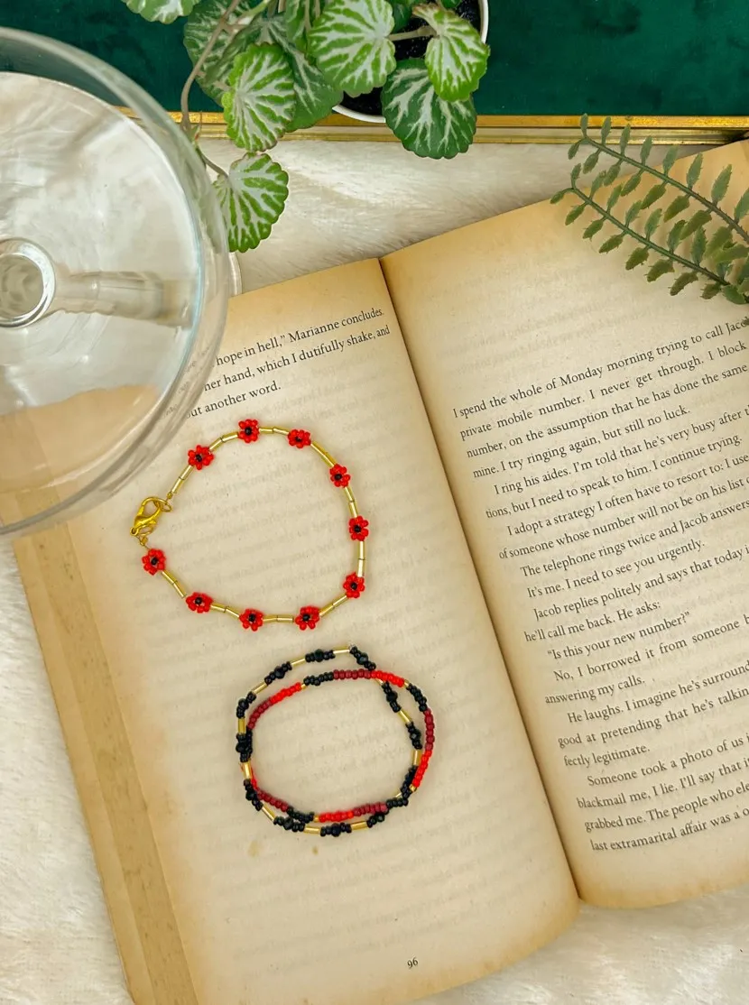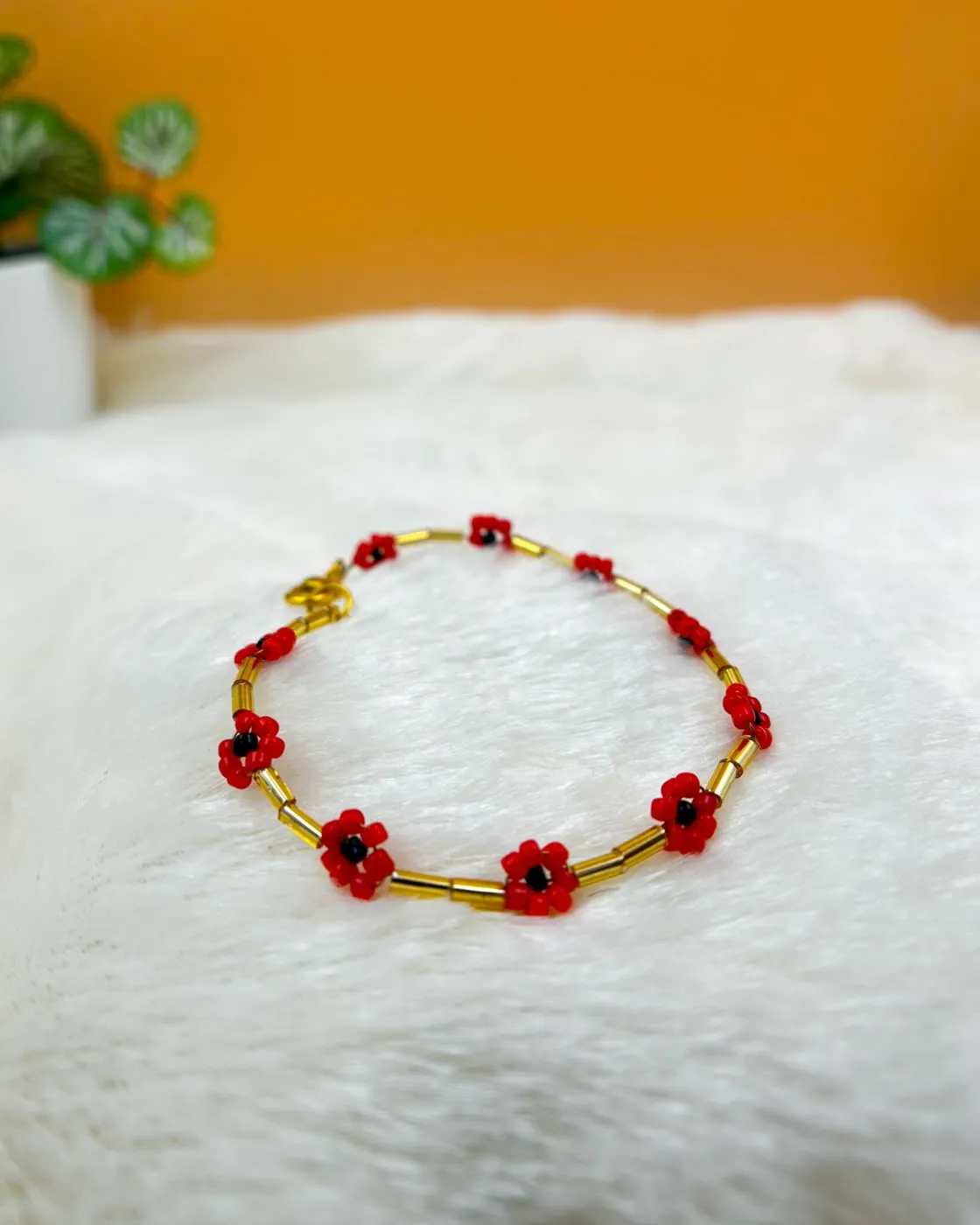 - A cute red daisy bead bracelet (lobster clasp-adjustable),