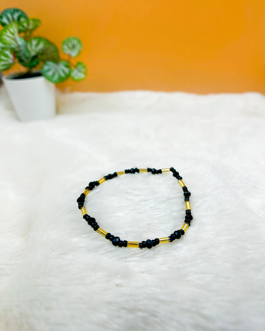 Our Marble Swirl Bracelet is a unique find for any one who swears by boho aesthetics. This gorgeous bracelet features black tumble bead band with a teal blue marble in the centre with hints of gold offered by two golden beads that sit next to the marble charm.