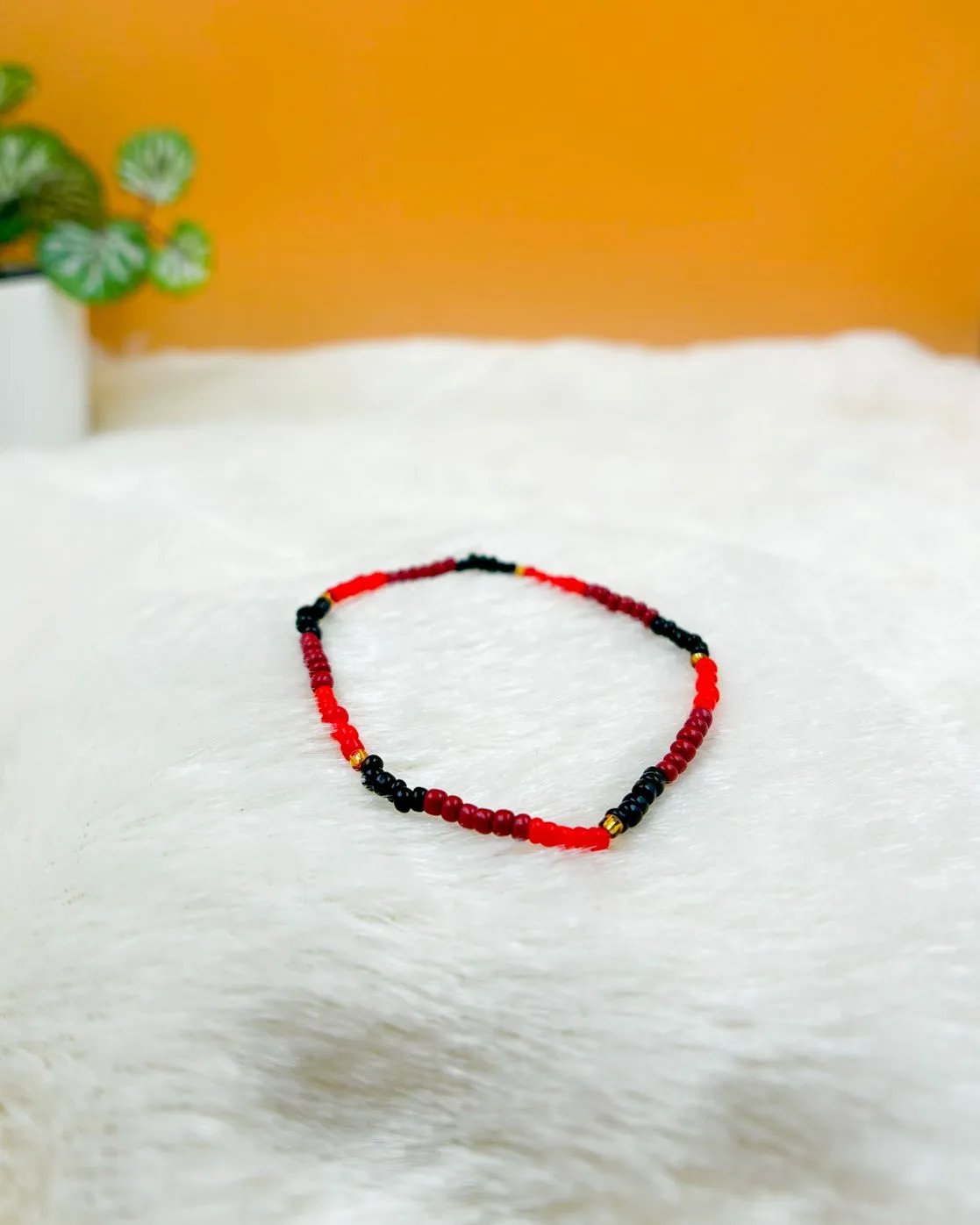 Our Fiery Star Bead Bracelet and Ring Stack is combination of pretty red daisy bracelet and bold green and red crystal bracelets accentuated with a fiery red star charm. Each piece is a unique work of art, waiting to adorn your wrist. These handcrafted beauties are accompanied by dainty golden rings and a red and golden accent ring.