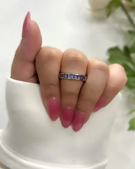 Looking for a ring that’s equal parts stylish, durable, and affordable? Meet our Rachel Anti-Tarnish Band Ring, the perfect blend of bold elegance and everyday practicality. Featuring soft lavender-hued stones in a sleek channel setting, this ring adds just the right pop of color to your outfit—day or night. Crafted in premium stainless steel, this beauty is waterproof, anti-tarnish, and built to shine through your busiest days. Whether you’re stacking it or letting it shine solo, this ring is a must-have for jewellery lovers who crave fashion and function at a price that won’t pinch.