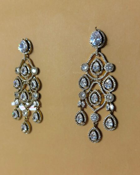 These dazzling Maya chandelier earrings weave together multiple pear‑cut stones in a tiered, heirloom‑inspired pattern, surrounded by fine micro‑pavé sparkle. The cascading design catches light from every angle, making them feel ultra‑luxurious yet wearable for festive nights or formal events. They bring instant elegance without needing any other statement piece. Built to shine like bigger‑ticket jewelry, they deliver show‑stopping brilliance in a single pair.