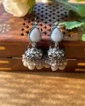 Won’t you love to be that one diva shining bright like a diamond in the room. Let our Monali earrings and matching tika set take care of that dreamy look! Both the earrings and maang tika feature silver-toned base studded with brilliant white diamonds along with lustrous monalisa stone and pearl droplets. These beauties are available in two elegant and trending colours.