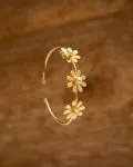 Discover the modern elegance of our Alvira Hasli, reimagining the timeless Rajasthan hasli with a contemporary flair. At its heart lies a striking flower design in radiant gold, accentuated by a lustrous mother of pearl center. Crafted with a flexible wired ring, this necklace ensures a comfortable fit for all, adding a touch of sophistication to any ensemble. Redefine tradition with this versatile piece, perfect for elevating your western or traditional look with effortless style.