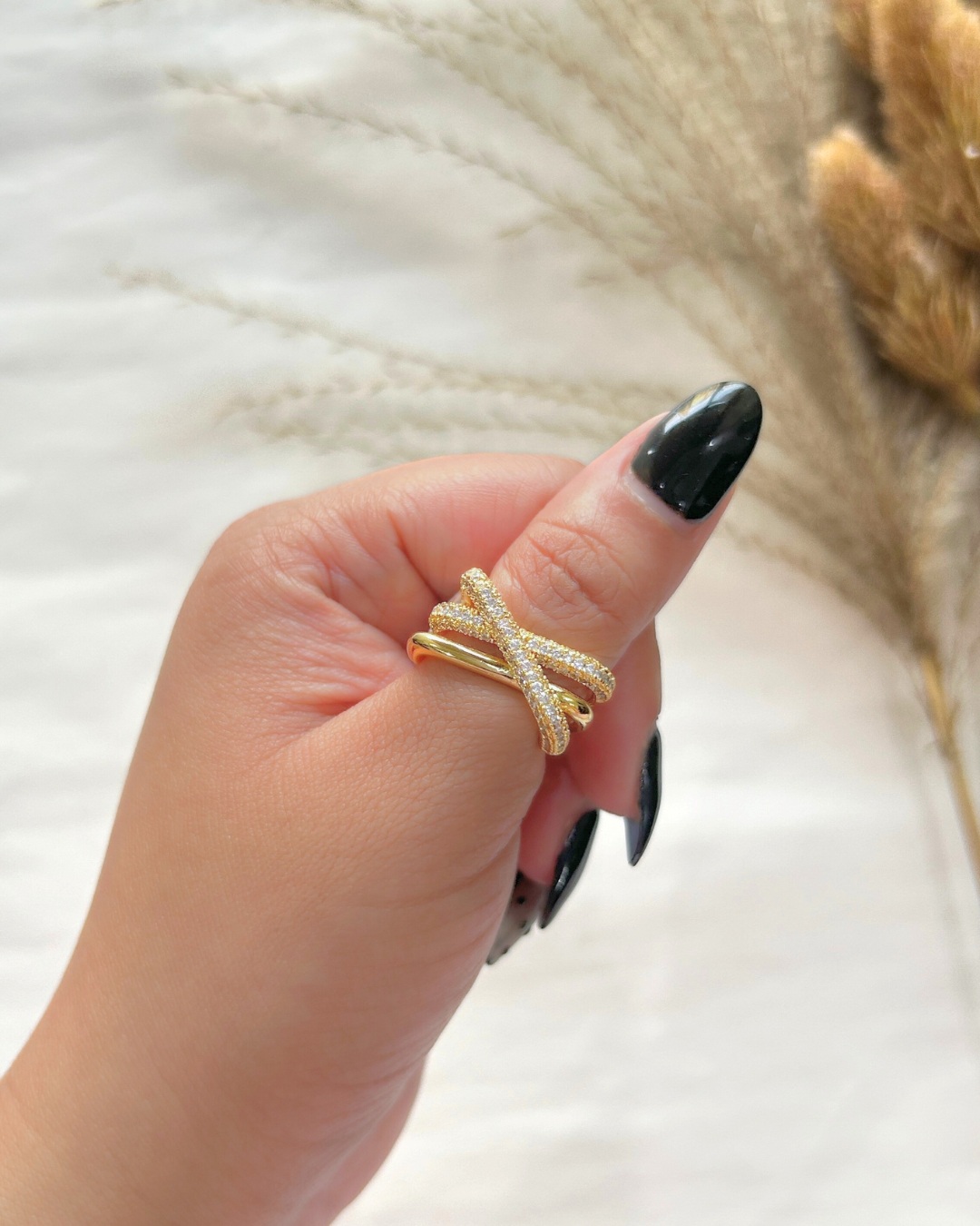 This bold gold-finish ring features a gorgeous croissant-wave design accented with subtle sparkle for a modern, confident look. Crafted to stand out yet remain comfortable, it’s the perfect statement ring for everyday wear. The anti-tarnish finish ensures long-lasting shine, making it as practical as it is stylish. Effortless, versatile, and undeniably chic—this is your go-to power ring.